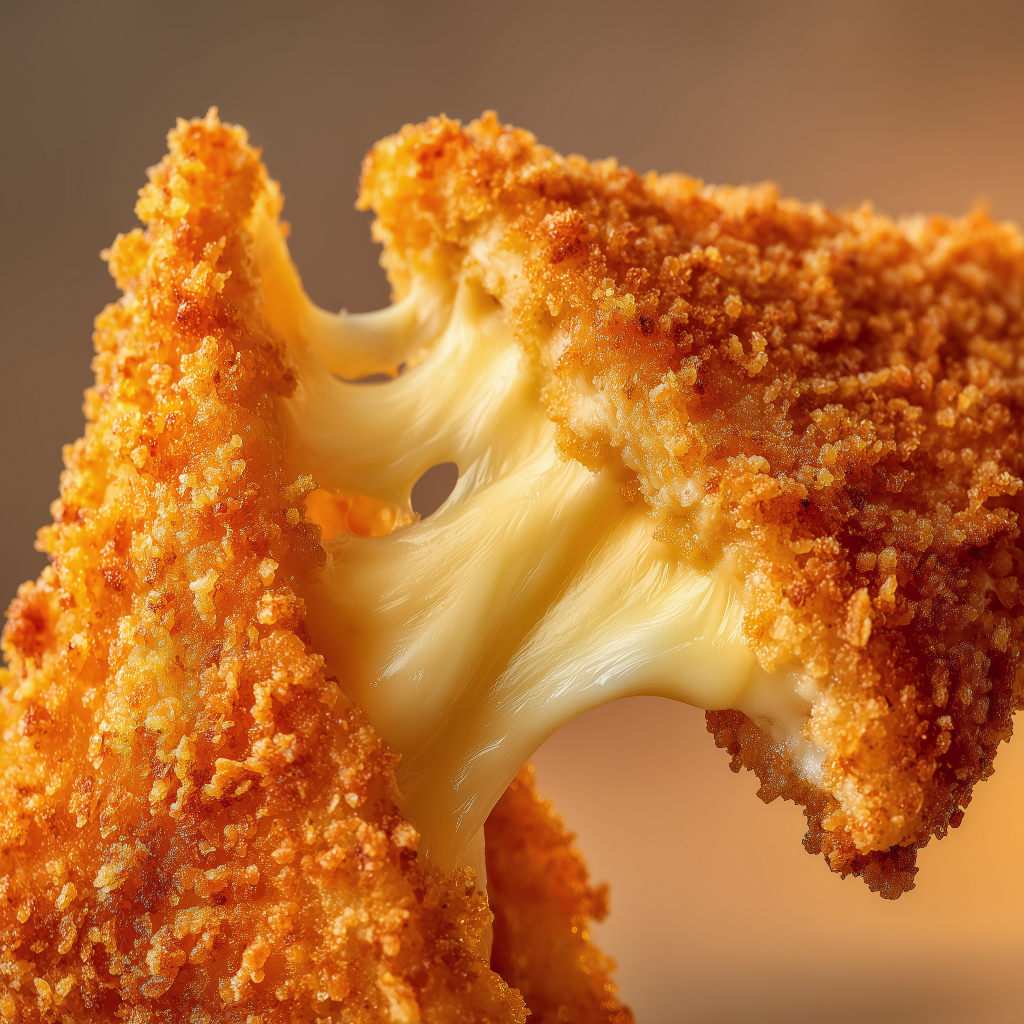 Cașcavalul nostru pane este creat pentru bucătării profesionale care urmăresc gust curat, textură impecabilă și timpi previzibili de servire. Selectăm cașcaval cu punct de topire stabil, care rămâne fin și elastic după regenerare, apoi îl îmbrăcăm într-un strat echilibrat de panadă și pesmet, pentru o crustă aurie, crocantă și uniformă. Rezultatul este un contrast plăcut între exteriorul crisp și miezul topitor de cașcaval, cu un profil aromatic blând, prietenos pentru un public larg. Rețeta este curată, fără potențatori, standardizată pe loturi pentru a obține același gust și aceeași textură în fiecare serviciu, indiferent de volum sau tură.