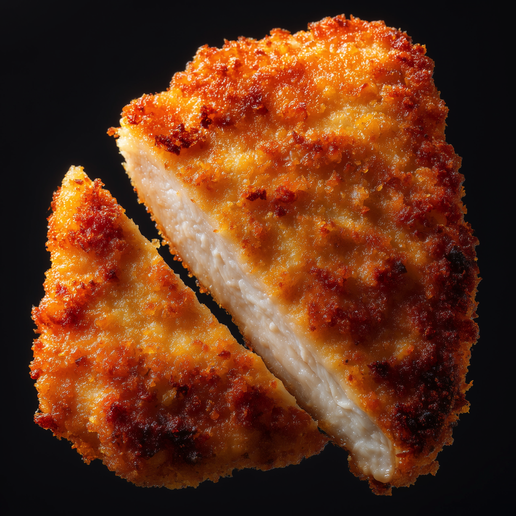 Șnițelul nostru de pui pane este conceput pentru bucătării profesionale care au nevoie de gust curat, prezentare îngrijită și timpi predictibili de servire. Folosim piept de pui fraged, bătut uniform pentru o grosime constantă, apoi trecut printr-o panadă echilibrată și îmbrăcat într-un strat fin de pesmet, care rumenește omogen și oferă o crustă crocantă, aurie. Rețeta este curată, fără potențatori, cu un profil blând și prietenos pentru un public larg, astfel încât să fie ușor de integrat atât în meniul zilei, cât și în oferte pentru evenimente sau livrări. Standardizarea pe loturi asigură același gust și aceeași textură, de la prima la ultima porție.