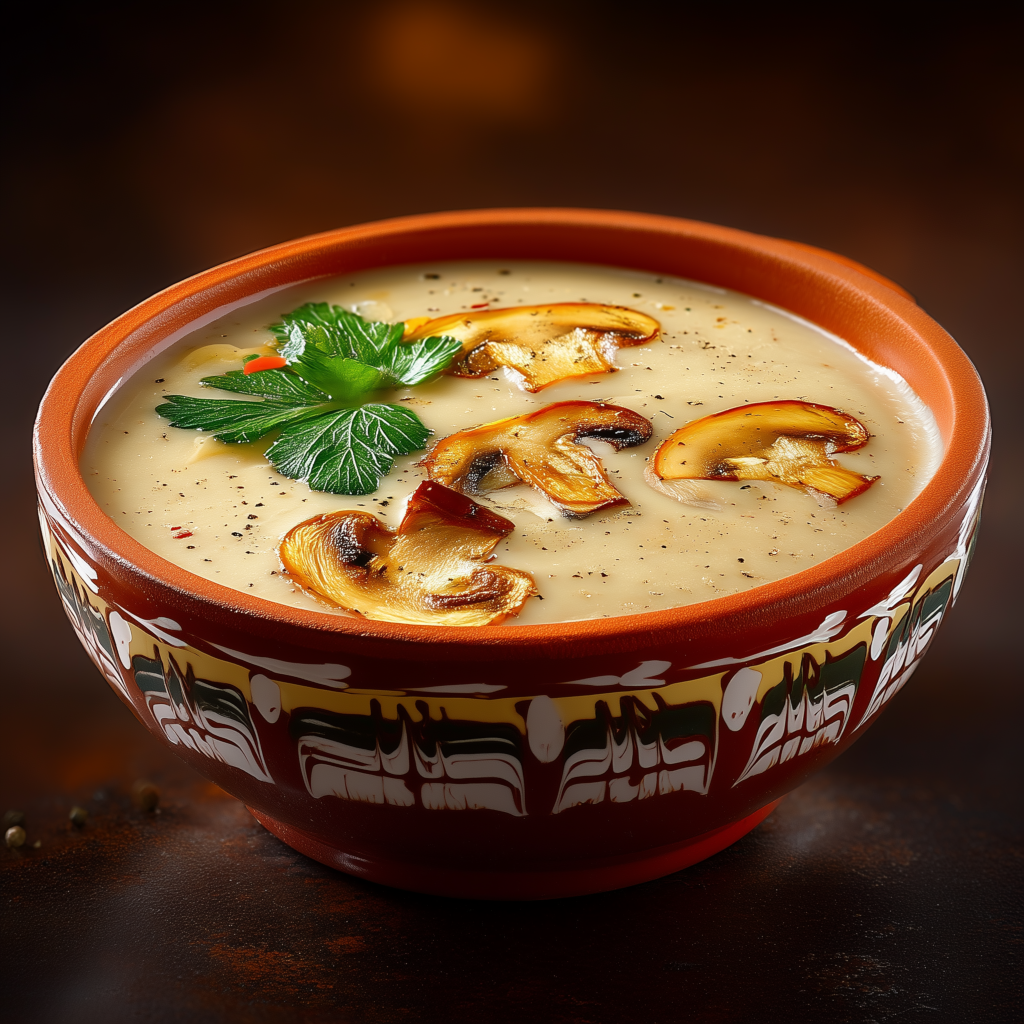 Supă cremă de ciuperci fină și aromată, cu ciuperci proaspete și legume alese, pasate pentru o textură catifelată, echilibrată cu smântână și condimente delicate.