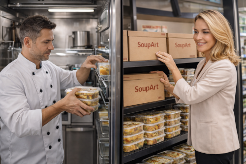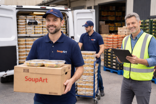 SoupArt oferă soluții alimentare special concepute pentru distribuitori: produse standardizate, ușor de listat și de livrat, cu gust constant și disponibilitate stabilă, livrate în lanț frigorific pentru integrare rapidă în rețeaua ta.