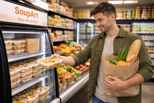 SoupArt îți oferă o gamă stabilă de produse gata de vânzare: ambalate pentru raft, cu gust constant și livrate în lanț frigorific. Rezultatul: rotație mai bună, aprovizionare predictibilă și un frigider „curat”, cu produse care se vând zi de zi.